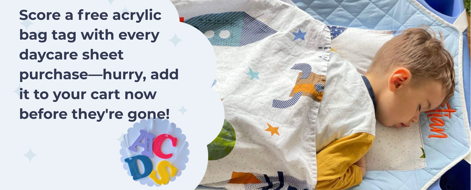 Our personalised products ensure your child won’t lose their daycare bedding or towels, and helps give kids a sense of familiarity and comfort from favourite, well-loved belongings.