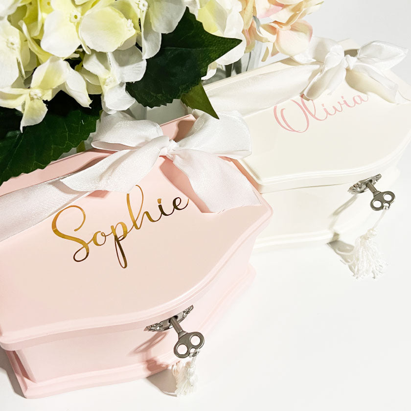 A thoughtful keepsake and beautiful gift, our personalised jewellery boxes are perfect for safely storing precious jewellery and other celebratory pieces.